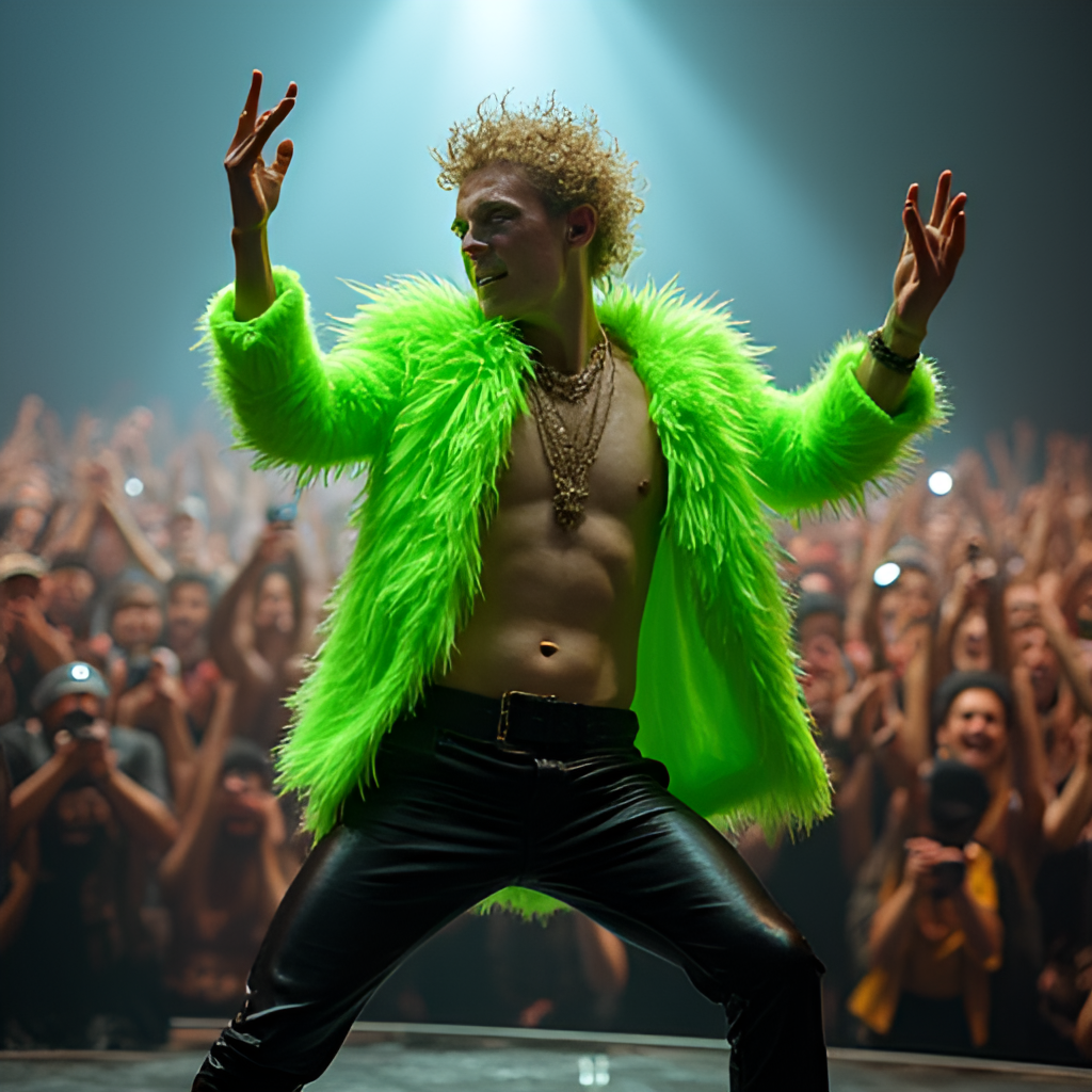 Käärijä: Hullunhauska Matka Suomirockin Huipulta Eurooppaan. Kappaleen musiikkivideo, jossa Käärijä esiintyy ikonisen neonvihreän boleron ja mustien nahkaho